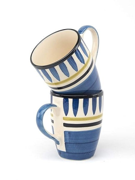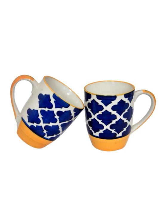 Ceramic Mugs Blue White Design- Set of 2