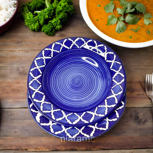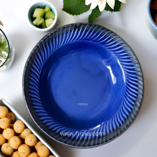Frizka Ceramic Side Plate Blue Moroccan Pasta Plate Serving Plates, Soup Plate for Serving Chowmine, Pasta, Snacks & Breakfast, Set of 2 Big Plates (Microwave & Dishwasher Safe)