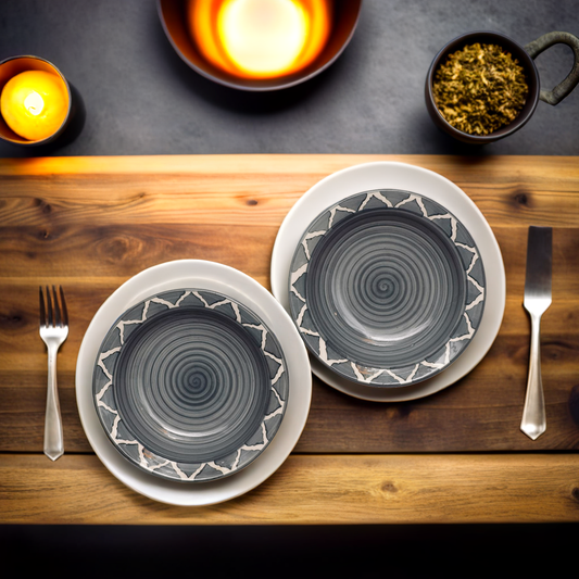 Frizka Ceramic Side Plate Grey Moroccan Pasta Plate Serving Plates, Soup Plate for Serving Chowmine, Pasta, Snacks & Breakfast, Set of 2 Big Plates (Microwave & Dishwasher Safe)