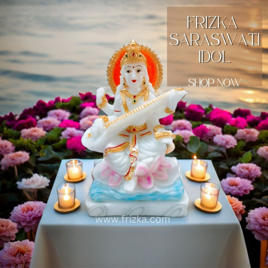 FRIZKA Saraswati mata Idol murti cultured marble Stone for home temple mandir Ghar Pooja Saraswati Statue Office Gift Statue- 7 Inch