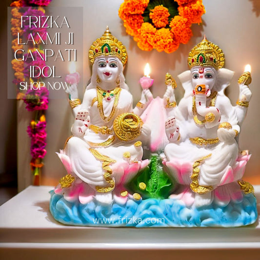 Frizka Laxmi Ganpati Marble Dust Idol/Statue, 20 cm height, Pink and White