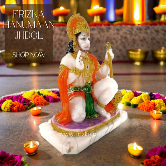 Frizka Elegant Lifestyle Marble Hanuman Ji Idol, Bajrang Bali Murti Religious Gift Car Office Home Decor Decorative Showpiece