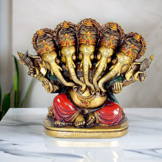 Frizka Handcrafted Panchmukhi Lord Ganesha Hindu God Ganesh Ganpati Idol Figurine for Home Office House Warming Statue Murti for Decoration and Pooja Gifting Purpose Sculpture