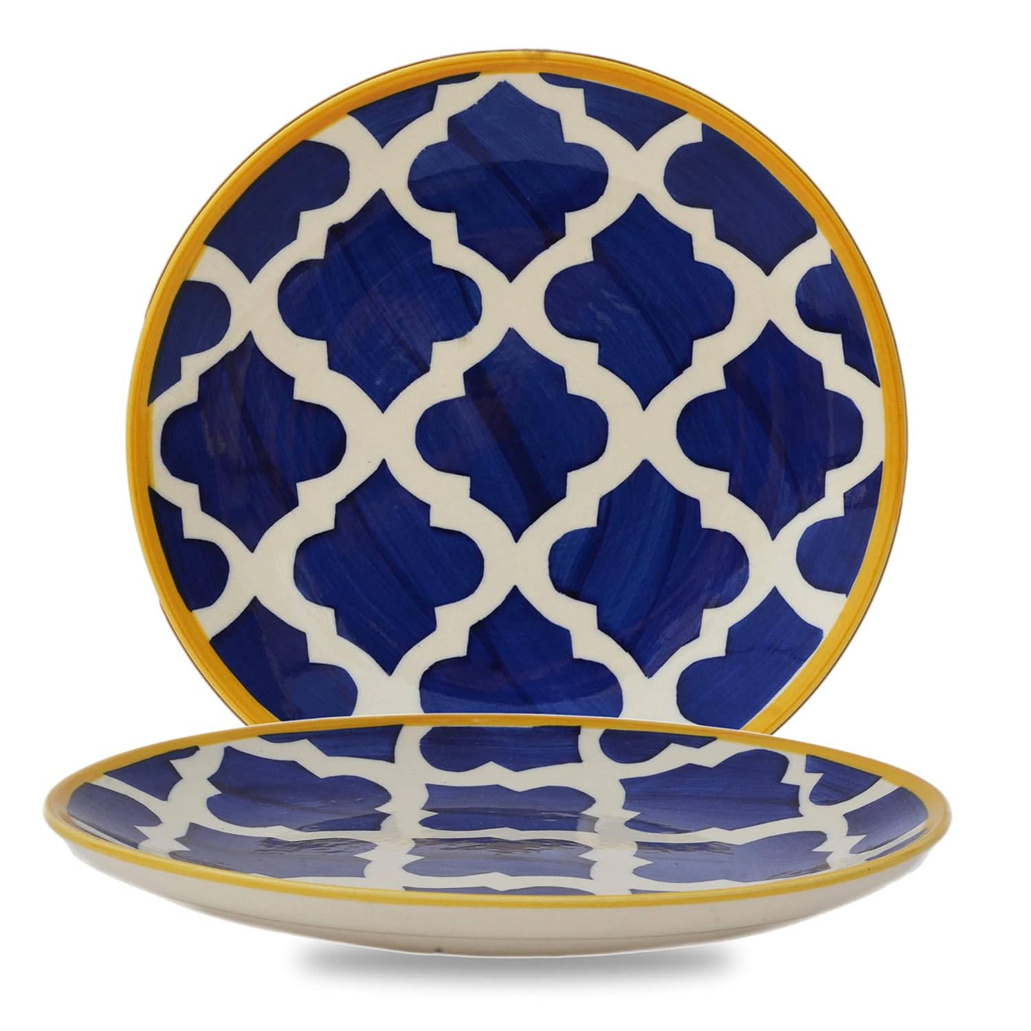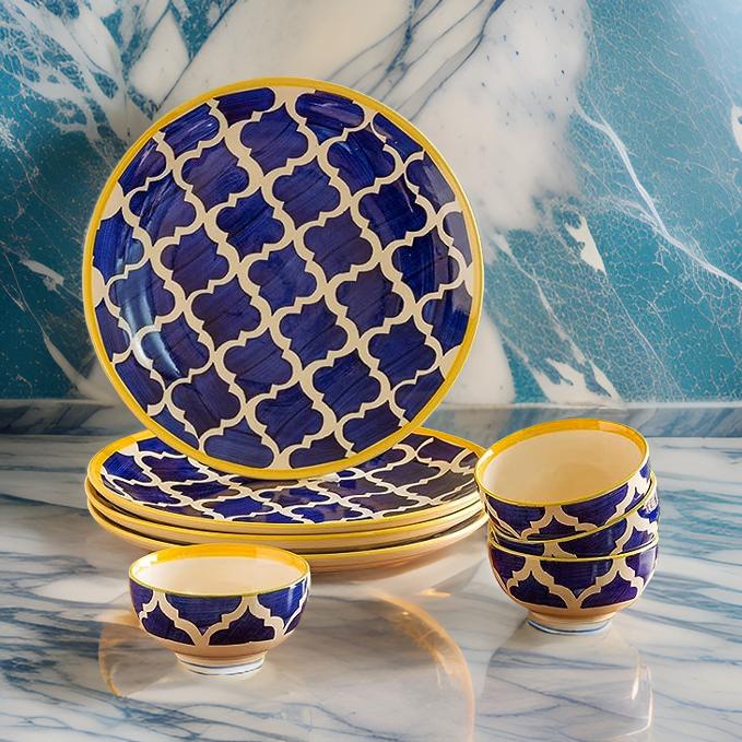 Frizka Moroccan Handpainted Ceramic Dinner Plates Set of 2 Ceramic Plates For Dinner and 2 bowls/katoris(10 Inch, Microwave Safe Plates & Dishwasher Safe) | Dinner Plates Ceramic - 4 Pieces