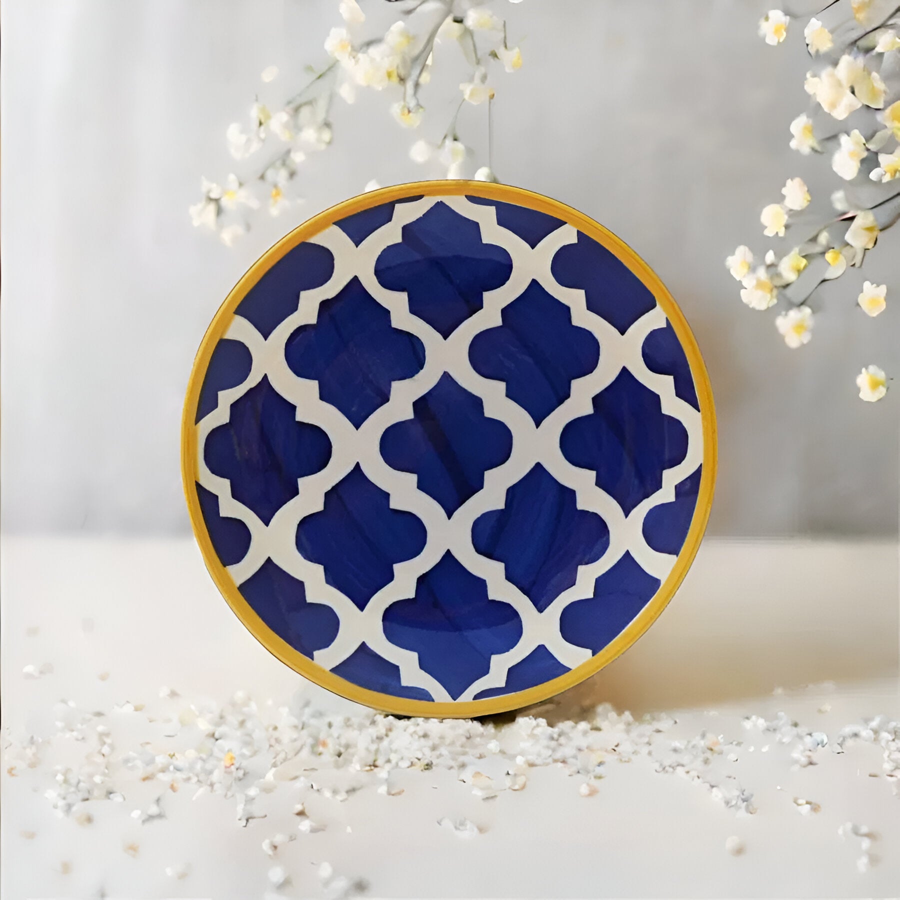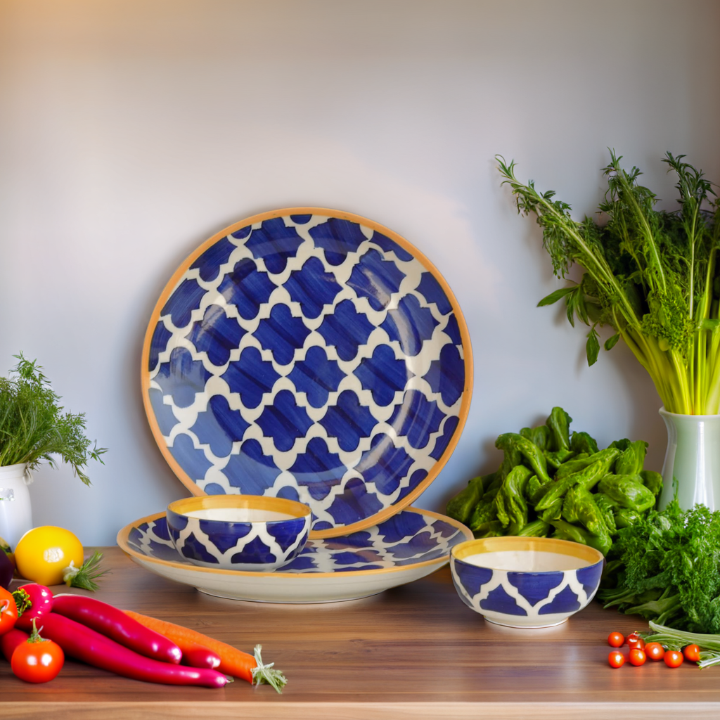 The plates feature a stunning blue glaze, reminiscent of the vibrant hues found in traditional Moroccan ceramics. The intricate patterns and geometric motifs are carefully hand-painted, adding an artisanal touch that makes each plate unique.