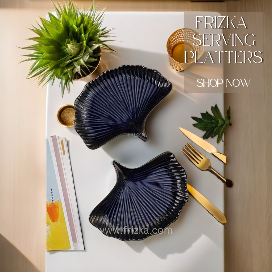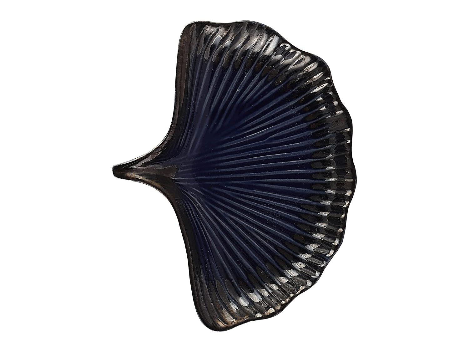 Frizka Peacock Exotic Glazed Leaf Ceramic Serving Platters for Snacks Serving Platters & Serveware 1 Piece , Microwave Safe, Dishwasher Safe) (Blue)