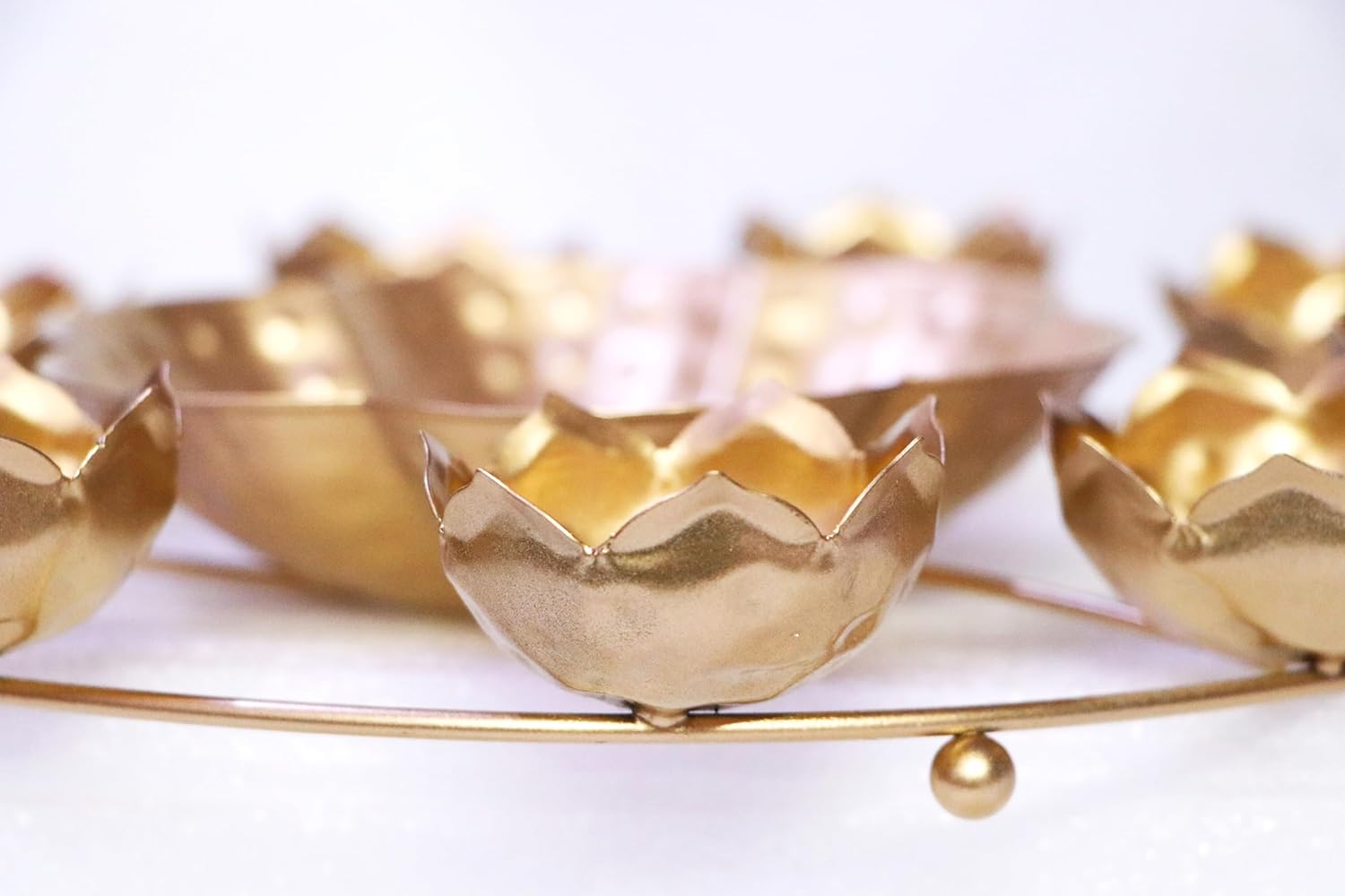 Frizka | Urli Bowl with Lotus Sign for Floating Flowers Round Shape Tea Light Candles Holder Bowl (Iron)- 1 Piece
