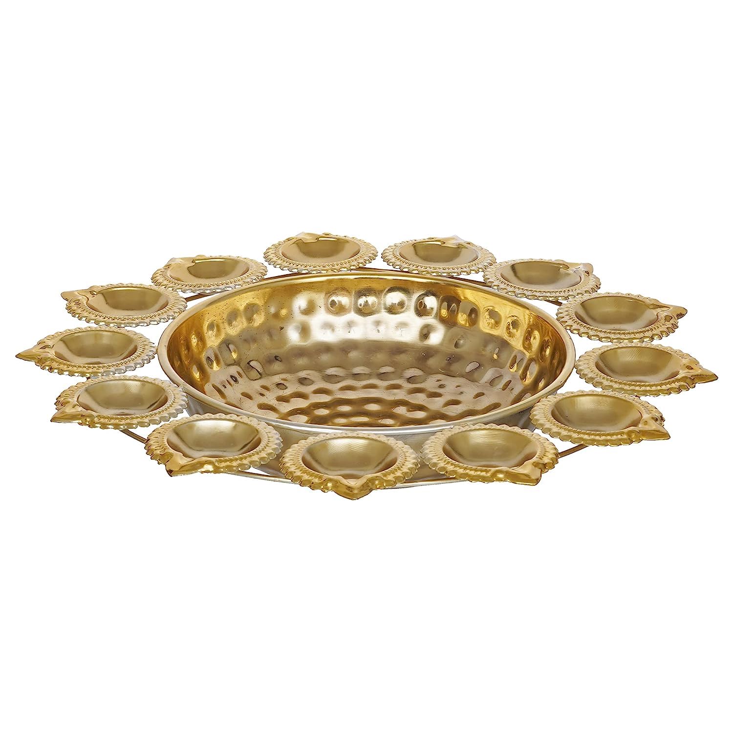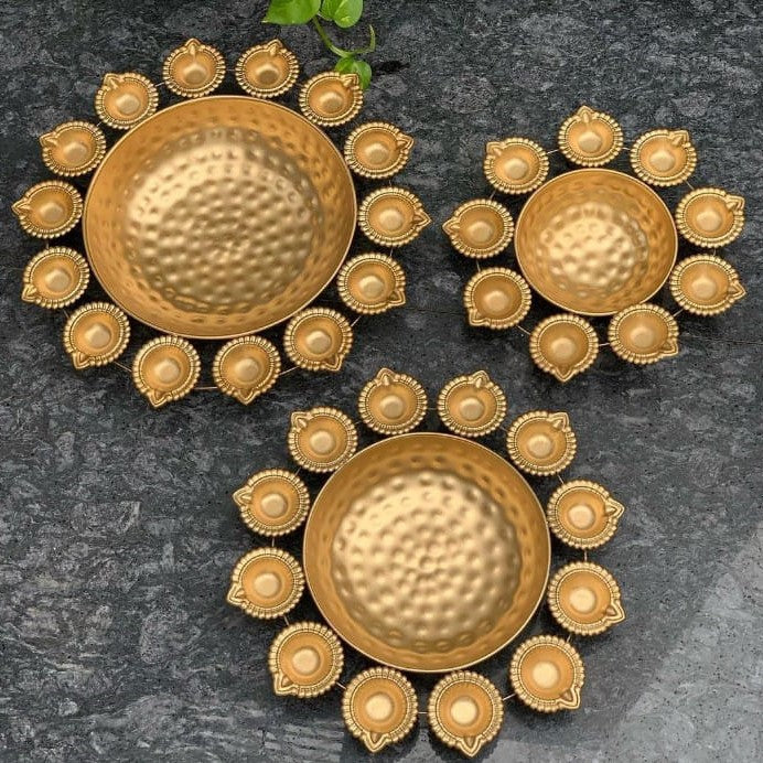 - Urli set Gold Polish Round Flower Decoration Lotus Tealight Candle Holder