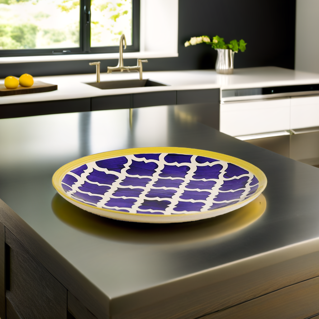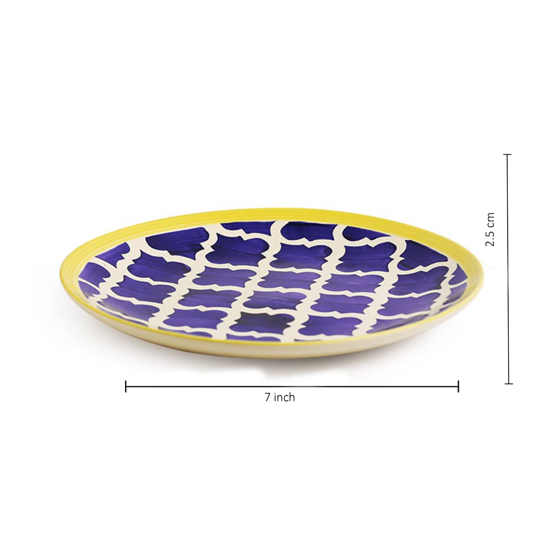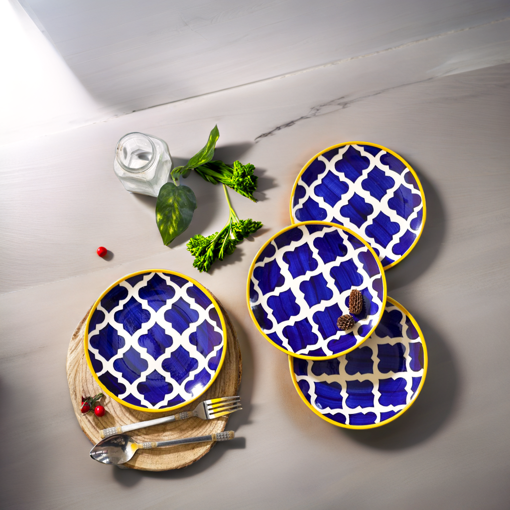 Frizka Moroccan Hand-Painted Premium Quarter Plates Ceramic 4 Pcs for Family of 4 | 4 Side/Quarter Plates | Dishwasher & Microwave Safe - Blue