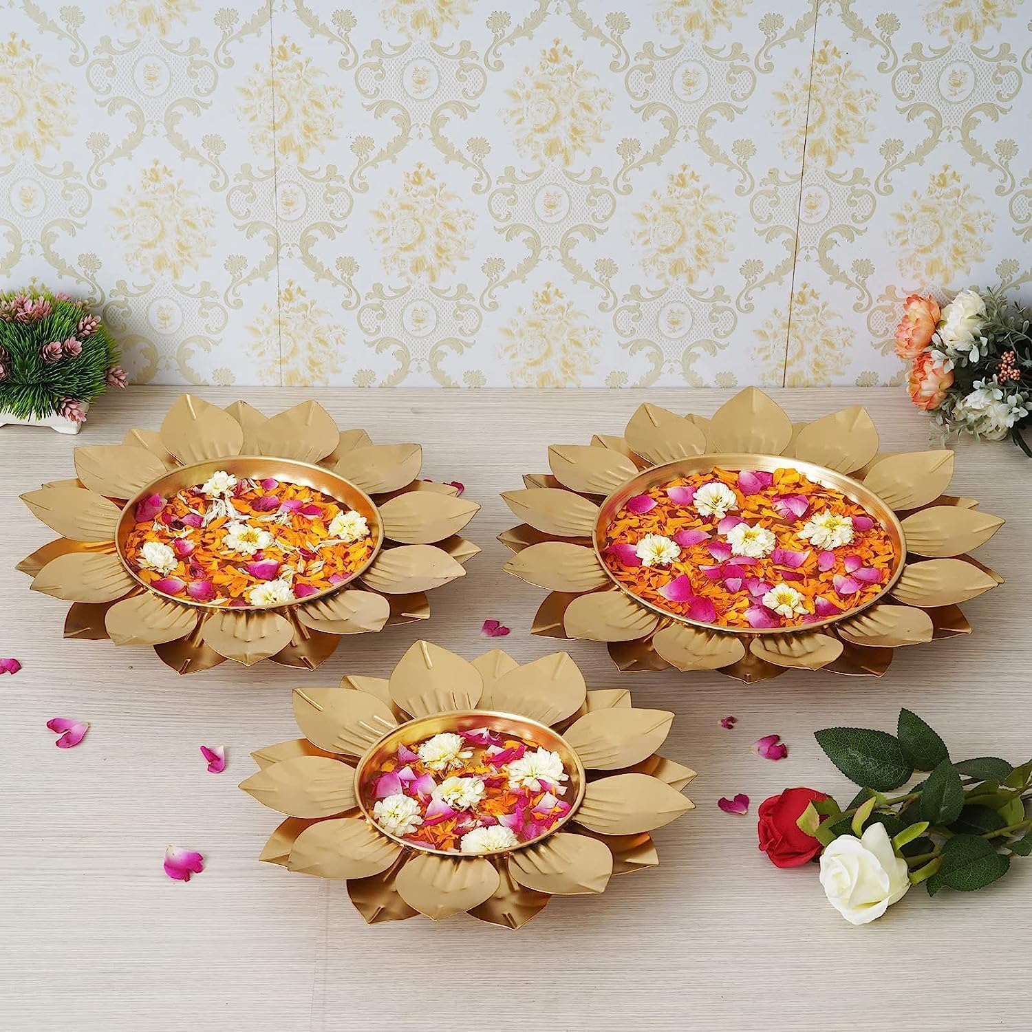 - 1 Gold Polish Round Flower Decoration Urni Bowl Tealight Candle Holder