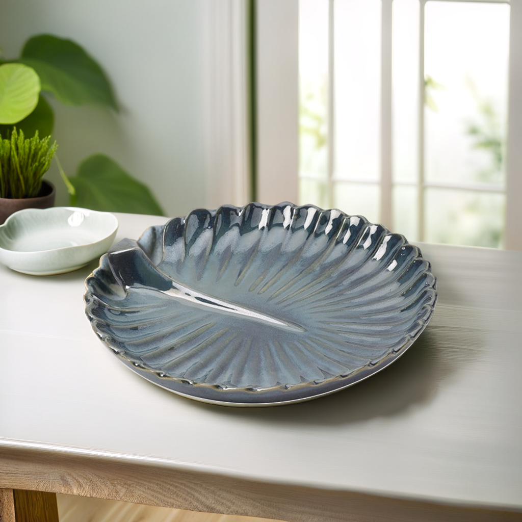 Frizka Green Leaf Shaped Ceramic Platter/Microwave Safe (Set of 1)