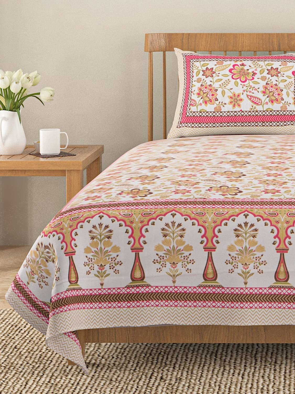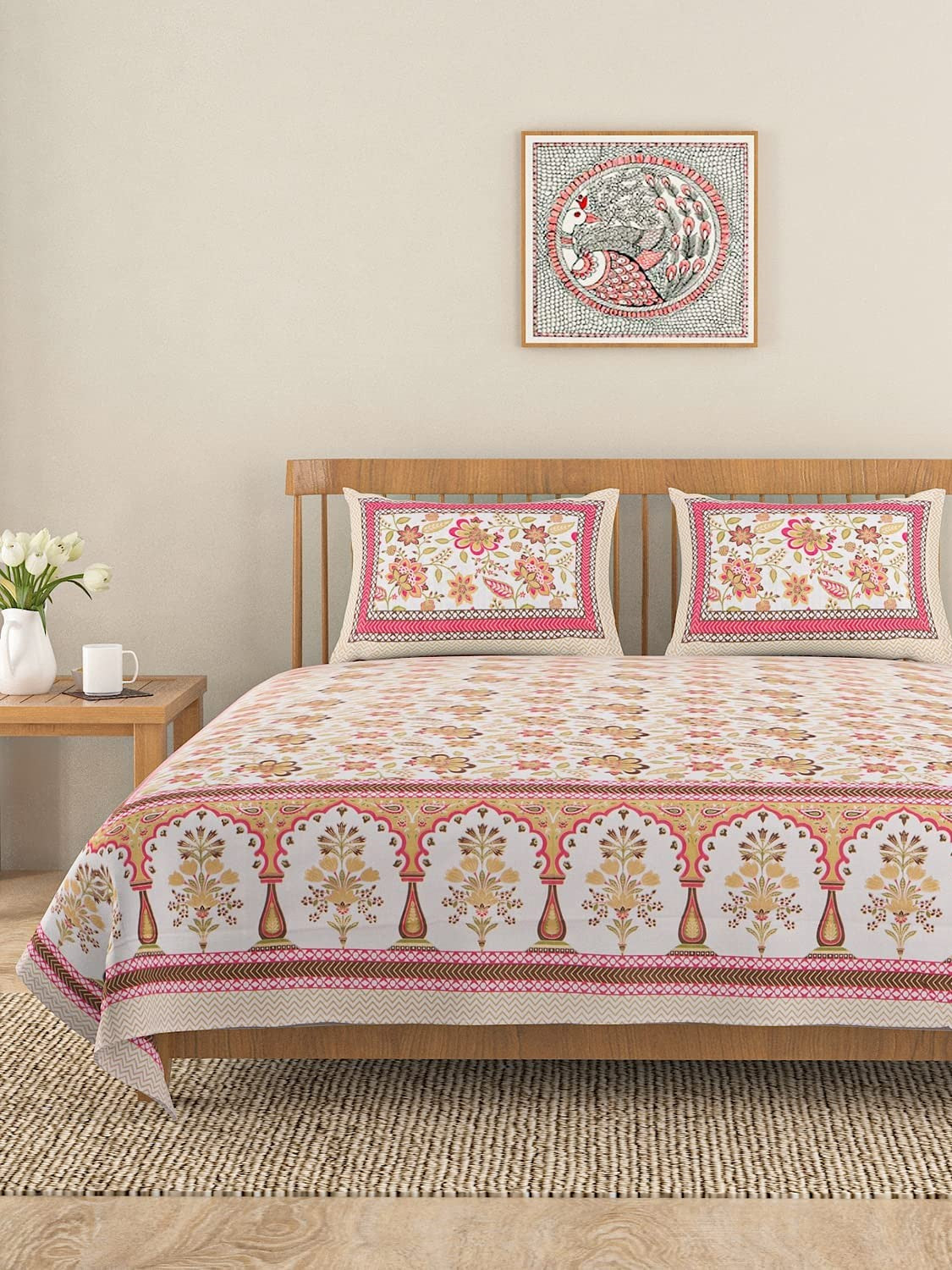 Jaipuri bedsheet King Size 100% Cotton bedsheet with 2 Pillow Covers