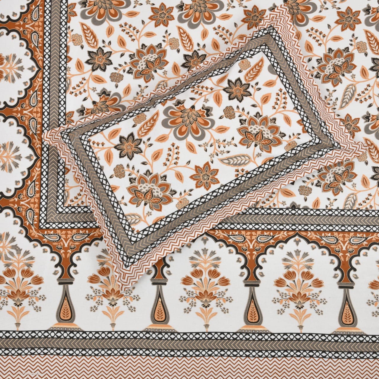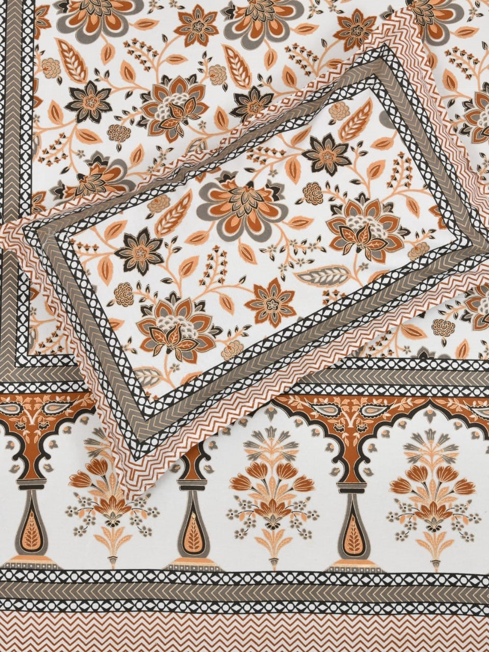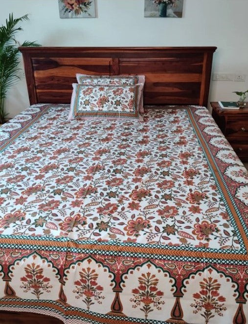 - Jaipuri Floral Premium Double Size Bedsheet with 2 Zipped Reversable Pillow Cover