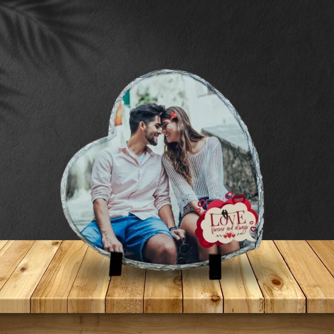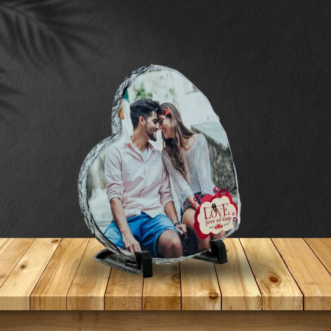Declare your affection for your sweetheart and immortalize it with permanence. Crafted from natural stone, this decorative tile takes on a charming heart shape and includes a stand for display. Customize it with your chosen image for a personal touch.