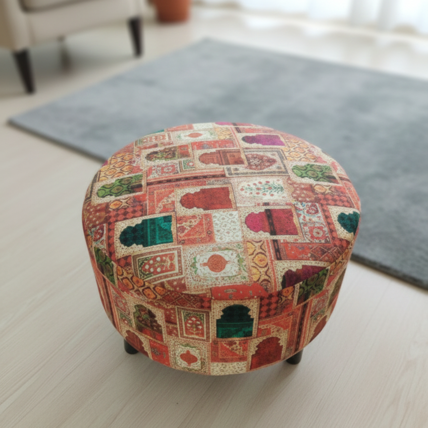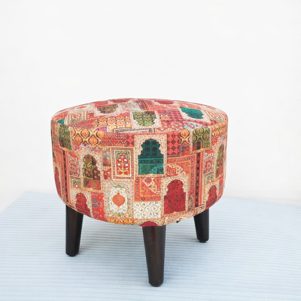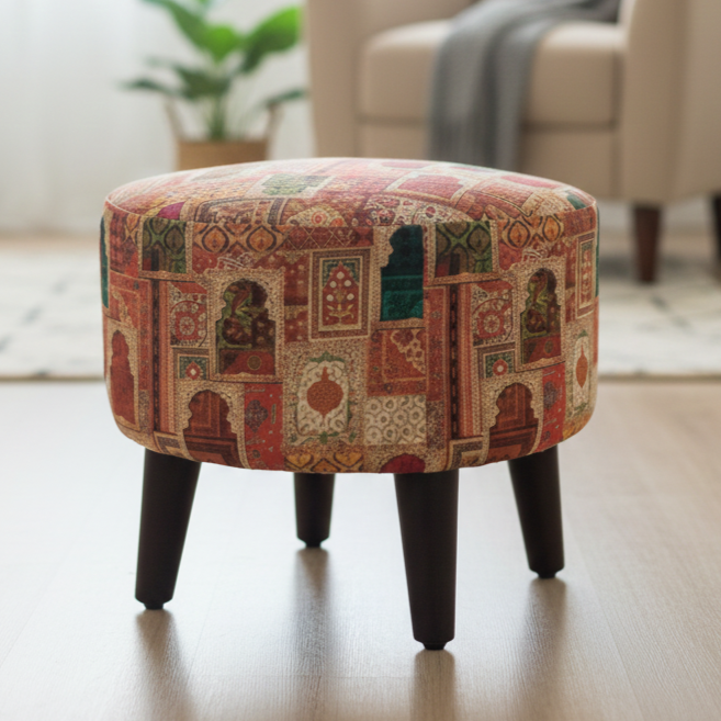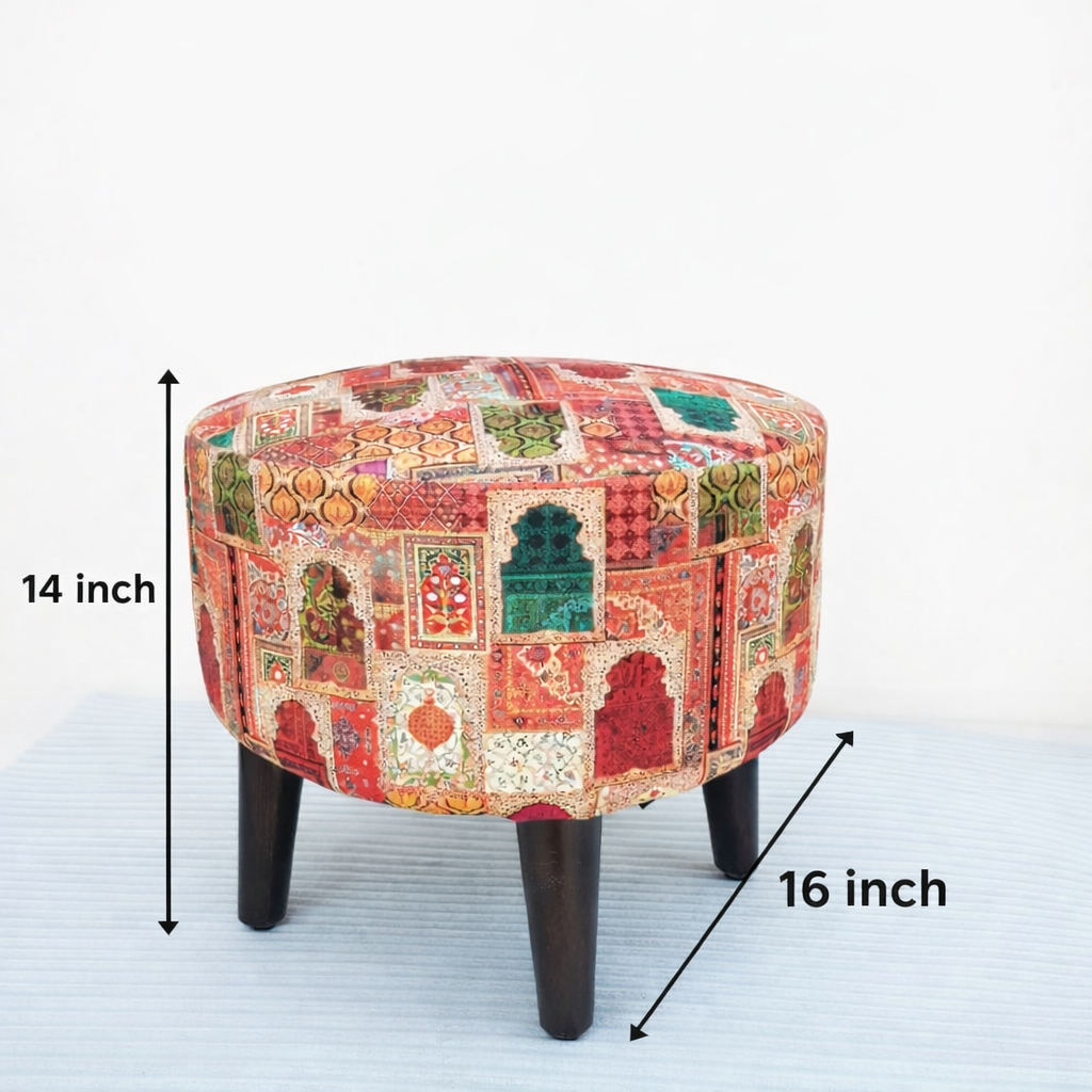Care Instructions: Avoid direct exposure to sunlight and harsh detergents. Keep away from sharp objects to prevent damage. Wipe clean with a dry, soft cloth only. This footrest/bench is designed to accommodate 1 person at a time. This Royal Courtyard patchwork footrest is crafted with love to give your feet the comfort they deserve. Doubles up perfectly as a handy extra seating space whenever needed. Place it in front of your dressing table to add charm while you get ready in style. These cute round stools can be placed in your balcony or living room to create a warm and cozy corner.