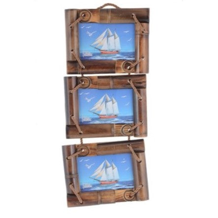 This set comprises three wooden photo frames designed to showcase multiple pictures in a single location.