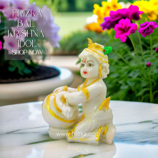 Bal Krishna Idol Handmade Lord Jai Shree Krishna Sitting Marble Polish Decorative Showpiece for Home Decor/Temple